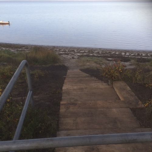 En grundejerforening ønskede en fælles trappe til standen og badebro område. Kyst-havneviden lavede sammen med Havnecon dimensionering og tegninger af havnetrappe. Kyst-havneviden forestod derefter ansøgning og udbud af projekt til entreprenør.